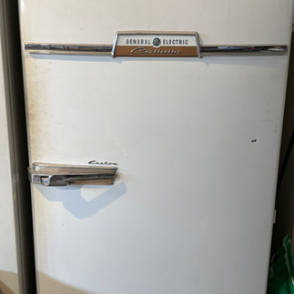Music lovers will appreciate the vintage Hammond X-66 organ, and the home also includes a Samsung TV, a deep freezer, and a vintage GE refrigerator.